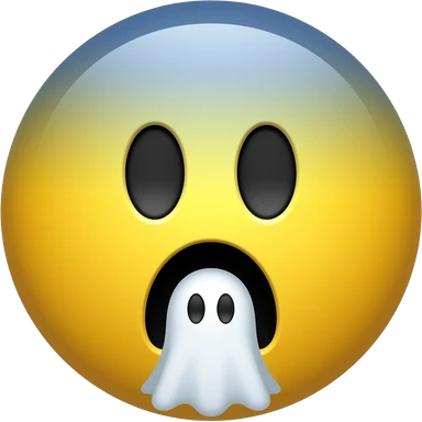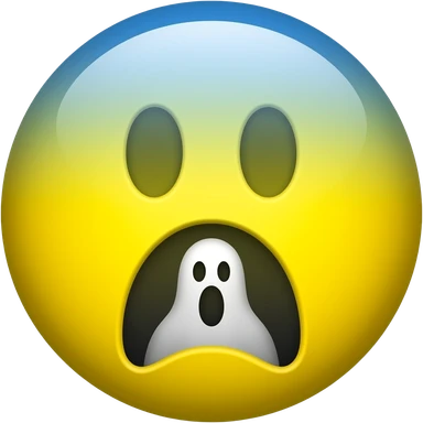 Yellow circle with blurred blue top screaming in fear with a ghost going out of its mouth emoji
