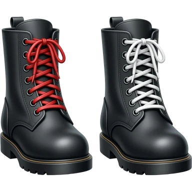 black combat boots with the left boot having red laces and the right boot having white laces emoji