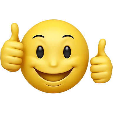 yellow emoji smiling wide with two hands with thumbs up emoji
