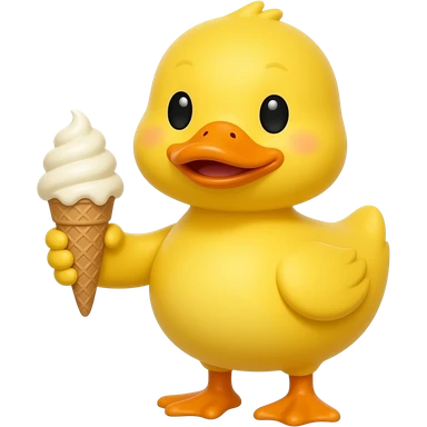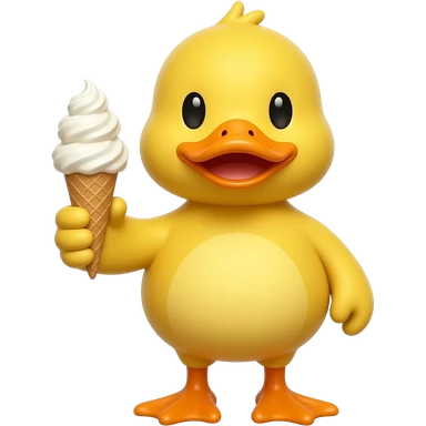 yellow duck standing pose front view hold pink color ice cream emoji | AI Emoji Generator