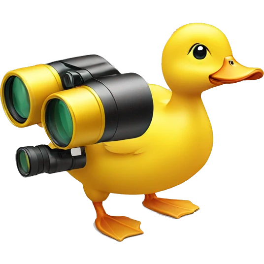 Yellow duck with small binoculars emoji | AI Emoji Generator