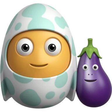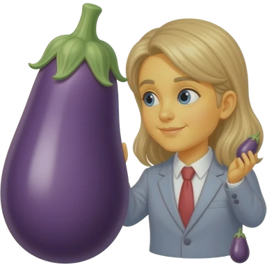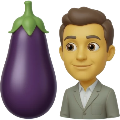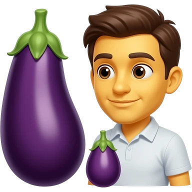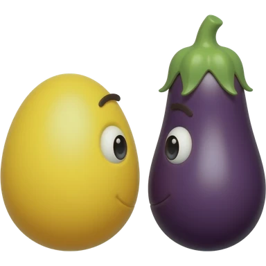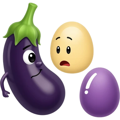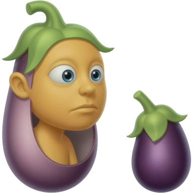 Yellow emoji face looking at 1 big eggplant and 1 small eggplant trying to decide between the 2 emoji | AI Emoji Generator