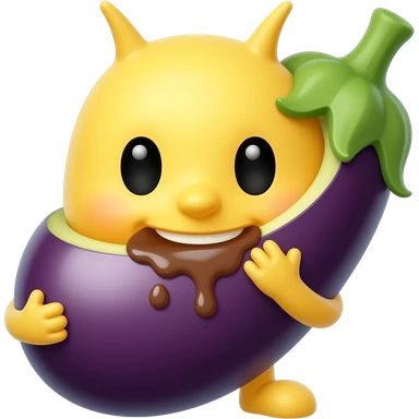 Yellow emoji face Eating Eggplant emoji