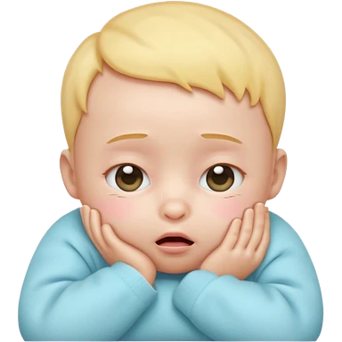 Cute 3D baby emoji, rubbing eyes, sleepy expression, short fine baby hair, soft pastel colors, clean white background emoji
