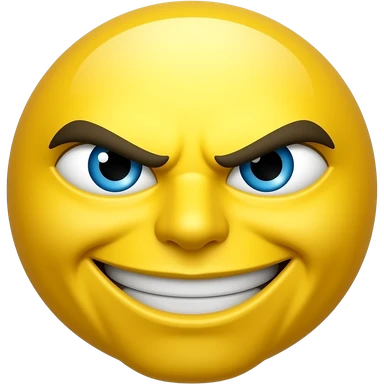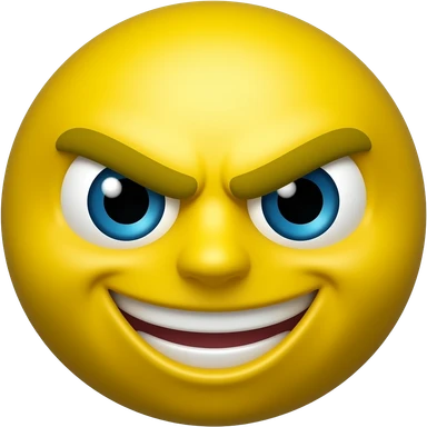 Yellow emoji with the expression of an angry person but still smiling but going insane emoji