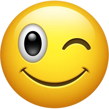 round yellow face, smiling, one eye twitching, apple emoji style emoji