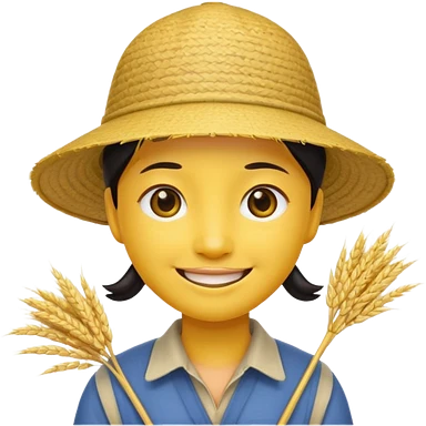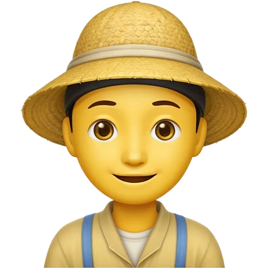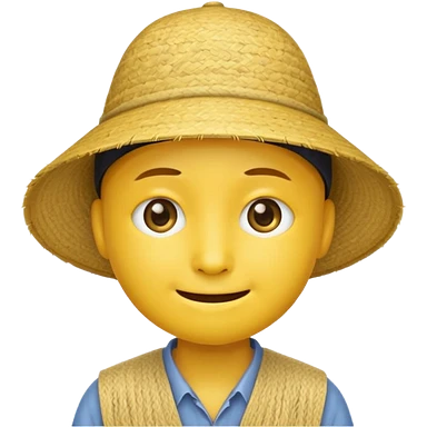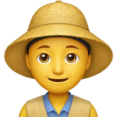 Yellow emoji smiley face with stereotypical Chinese facial features and rice farmer hat emoji | AI Emoji Generator