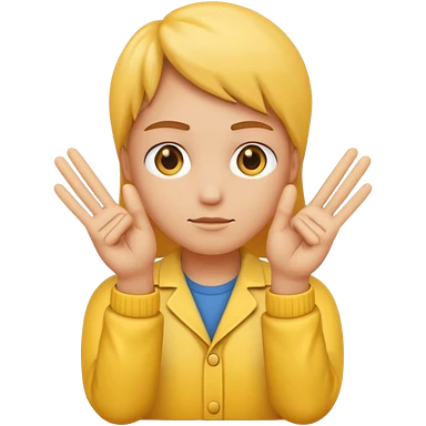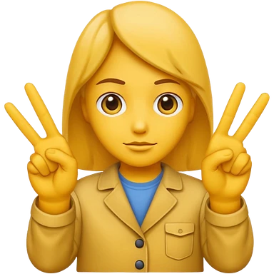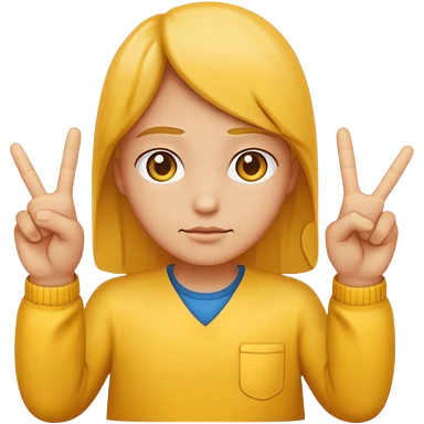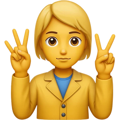 An standard yellow-color emoji that looks very serious and has his hands clasped while making a peace sign infront to portray a meaning of deep thinking or serious consideration. emoji