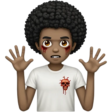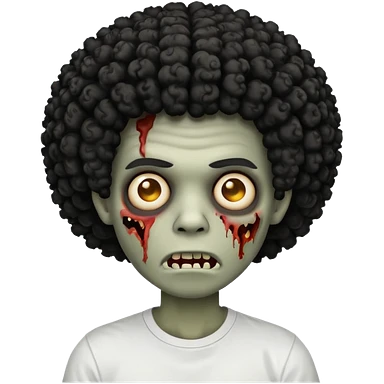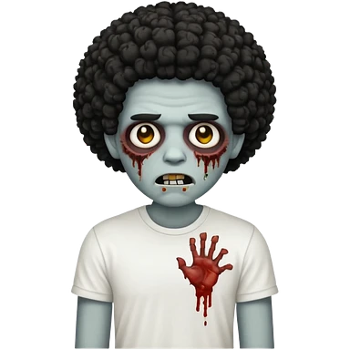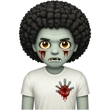 Make a image of a zombie with a curly Afro with a fade make it like a emoticon not as scary make hair black and with a white t shirt emoji