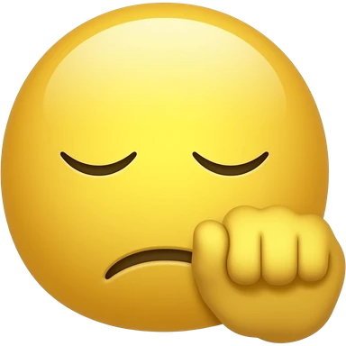 yellow face emoji with no nose and with a balled hand turned and next to the face and eyes closed down emoji