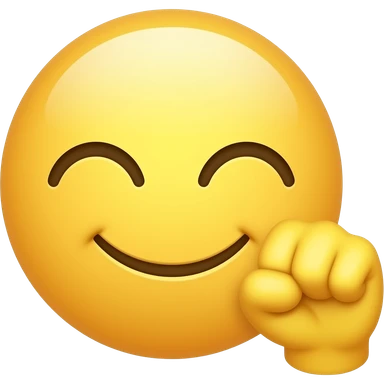 yellow face emoji with a fist hand next to the face and eyes closed smiling emoji