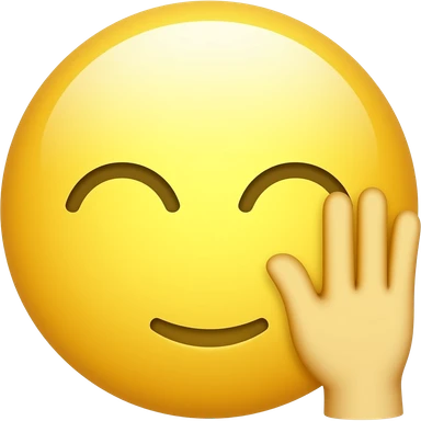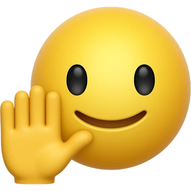 yellow face emoji with a smile and no nose and with a grabbed hand turned and next to the face and eyes closed down emoji