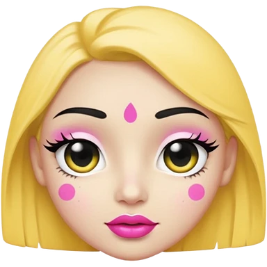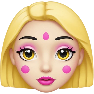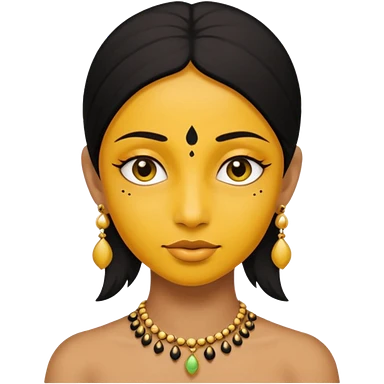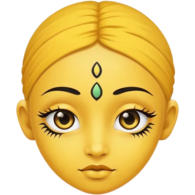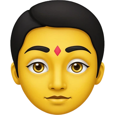 Yellow face with cute eyes and black bindi emoji | AI Emoji Generator