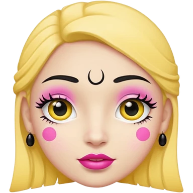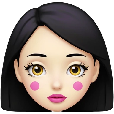 Yellow face with cute eyes pink lips black hair and black dot at forehead emoji