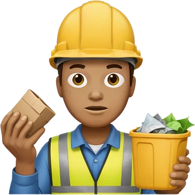 garbage man with yellow helmet holding garbage emoji