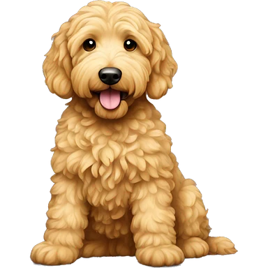 Yellow Golden-doodle dog head smiling with tongue out emoji | AI Emoji Generator