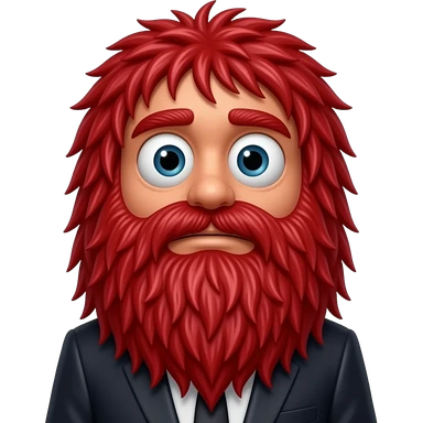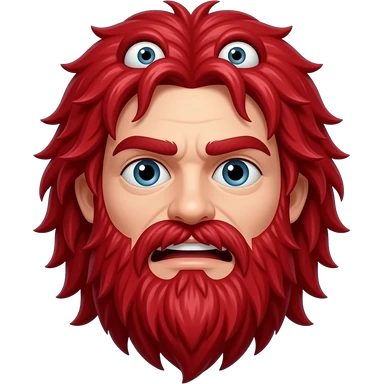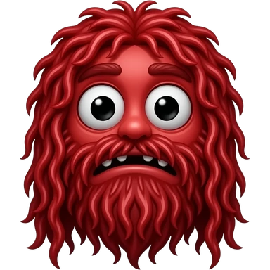 Red Guy from Don’t Hug Me I’m Scared, Red monster with long, stringy red hair covering the face and mouth, cartoon eyes on top of his head emoji