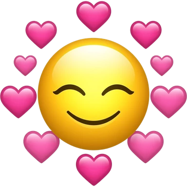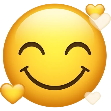 cute smiling yellow face with blush and pink pastel hearts around the face emoji