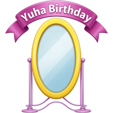 yellow purple standing Mirror with text on top yuha birthday , transparent background inspired by barbie colour pallete emoji