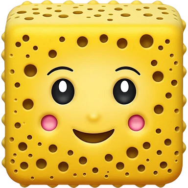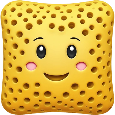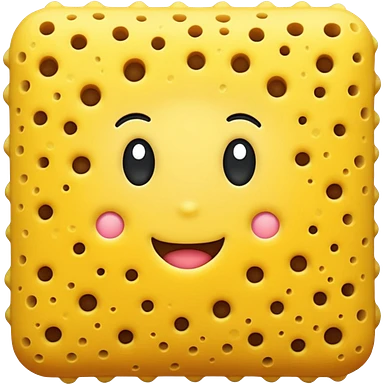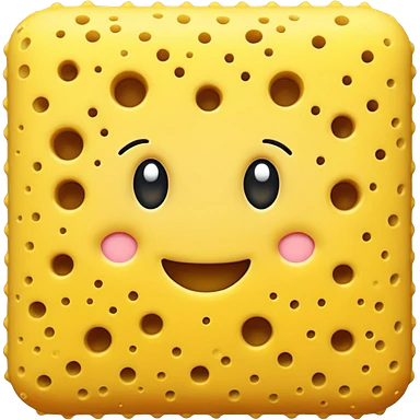 cute yellow sponge with bubbly texture, smiling face, simple background emoji