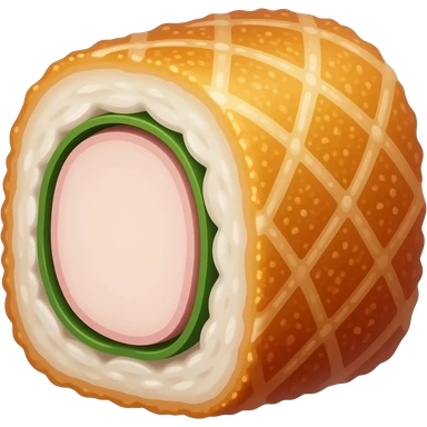 single round sushi maki cross-section, rice ring and colorful center emoji