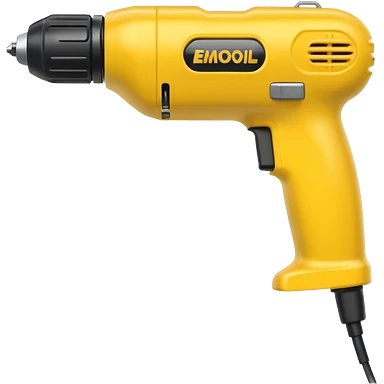 electrician brown hair yellow skin with blue shirt head with a power button on it. with golden glasses with a red drill in his hand emoji