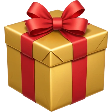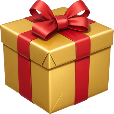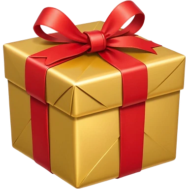 present with gold wrapping and red ribbon with top off and confetti coming out emoji