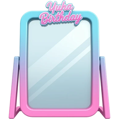 blue pink standing Mirror with text on top yuha birthday , transparent background inspired by barbie colour pallete emoji