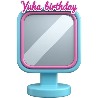 blue pink square standing Mirror with text on top yuha birthday , transparent background inspired by barbie colour pallete emoji