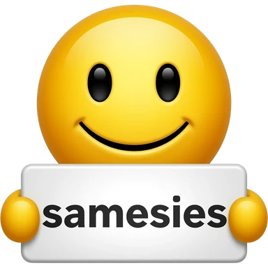 Yellow smiley face with a sign that says "samesies" emoji