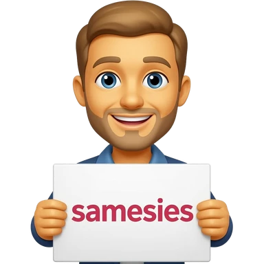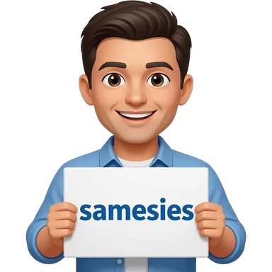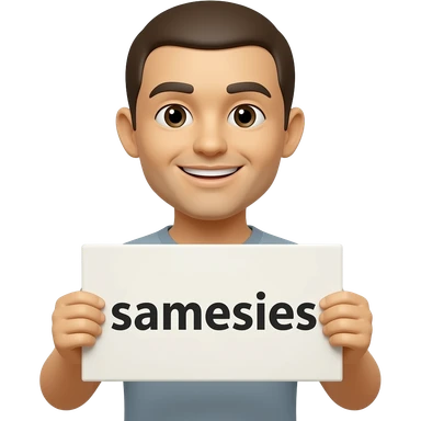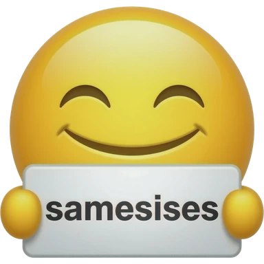 Yellow smiley face holding up a sign that says "samesises emoji