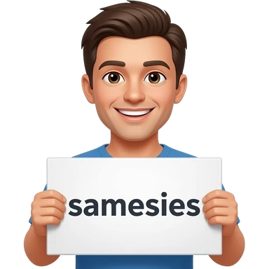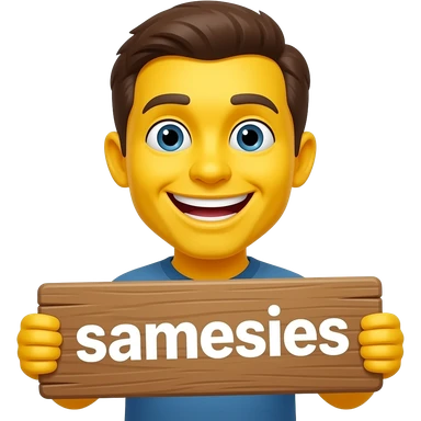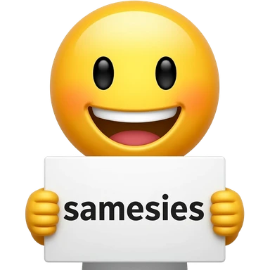 Yellow smiley face holding up a sign that says "samesies" emoji