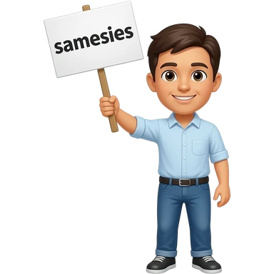 Yellow smiley face holding up a sign that says "samesies emoji