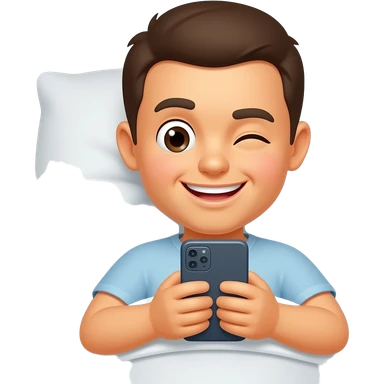 Yellow tired smiley reading phone messages in bed with one eye open emoji | AI Emoji Generator