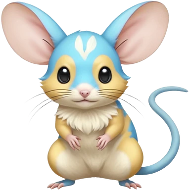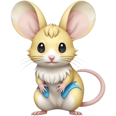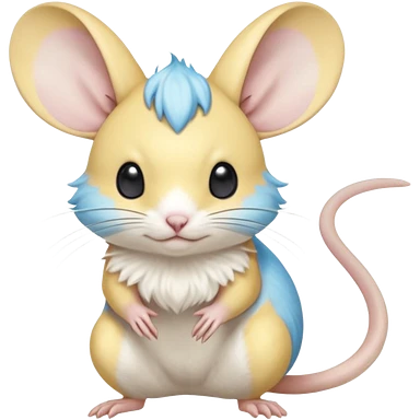 Mustard-Yellow white and cyan-blue Gerbil-Jerboa-Minccino-Emolga-Pachirisu-Pokémon-Fakémon-hybrid-fusion-creature emoji
