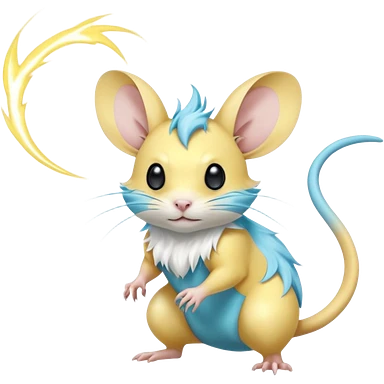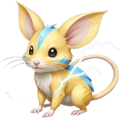 Elemental electric Yellow white and cyan-blue Gerbil-Jerboa-Minccino-Emolga-Pachirisu-Pokémon-Fakémon-hybrid-fusion-creature emoji