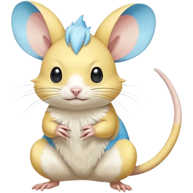 Yellow white and cyan-blue Gerbil-Jerboa-Minccino-Emolga-Pachirisu-Pokémon-Fakémon-hybrid-fusion-creature emoji | AI Emoji Generator