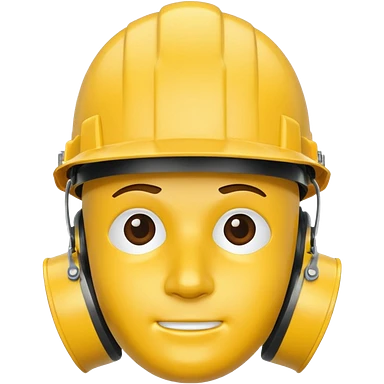modern emoji icon of worker in helmet goggles gloves standing by guarded industrial machine with green shield safety signs industrial color palette yellow orange gray green emphasizing protection regulation machinery safety emoji