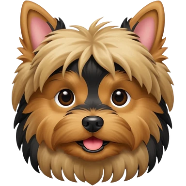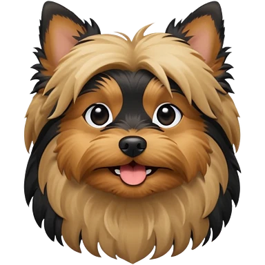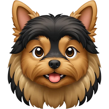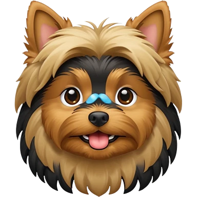 The Yorkshire Terrier, size of the dog really small, like puppy. The dog have a small brown spot on his nose. The dog can be angry or give a kiss emoji