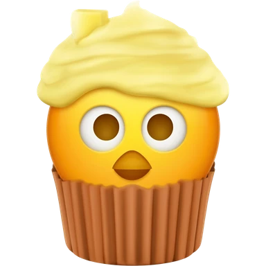 yelow chicken similar in appearance to the apple emoji, but inside a cupcake form and with baby yellow frosting on its head, make th emoji standing like this one ๐ฃ emoji | AI Emoji Generator