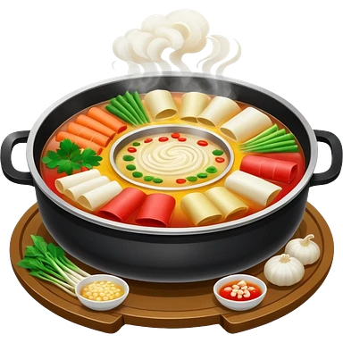 chinese hotpot, spicy red broth, tofu and mushrooms emoji
