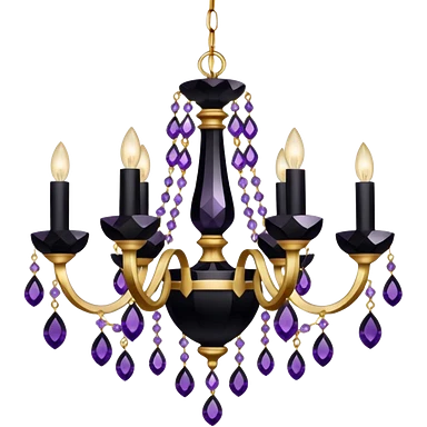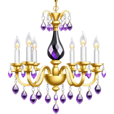 Luxurious black and white chandelier with gold and amethyst crystals emoji