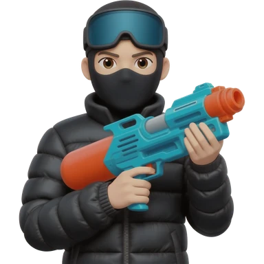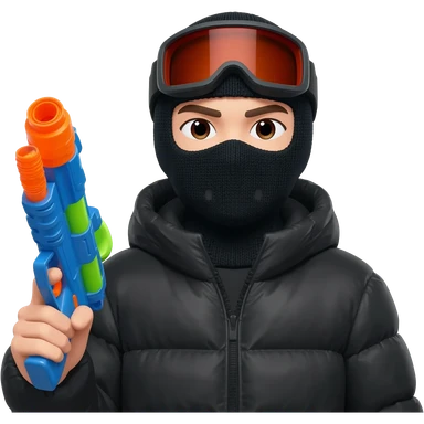 YN with a water gun. He should be in a ski mask, black puffer emoji