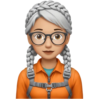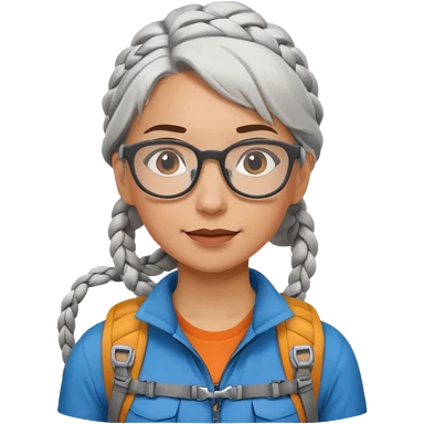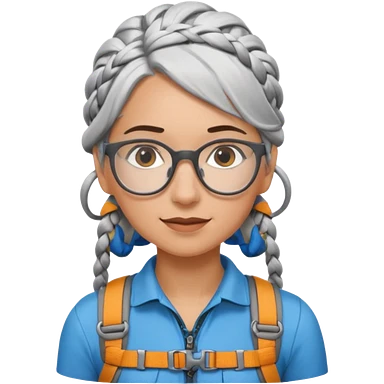 young climber woman with white/grey braided hair and glassess emoji