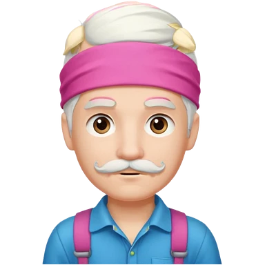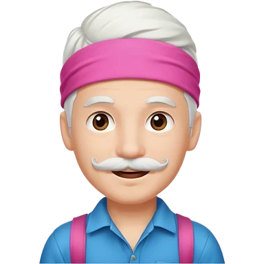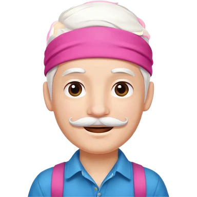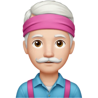 young climber boy with white hair and pink headband and mustache emoji