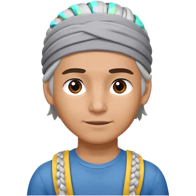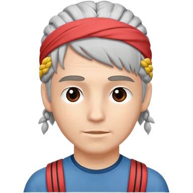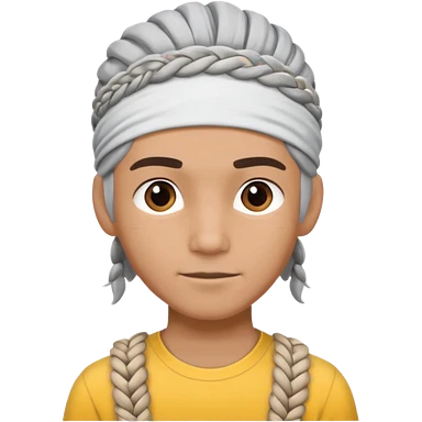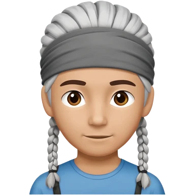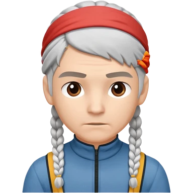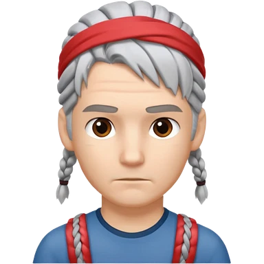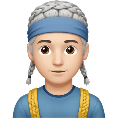 young climber man with white/grey braided hair and headband emoji