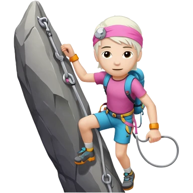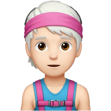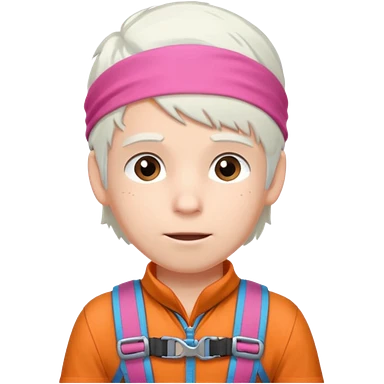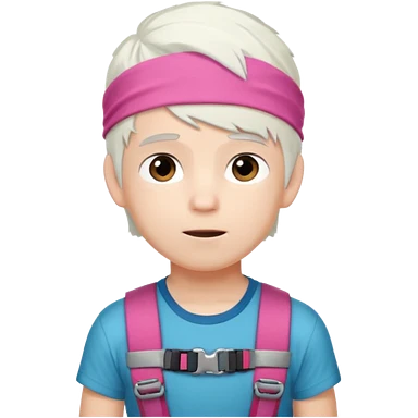 young climber boy with white hair and pink headband emoji