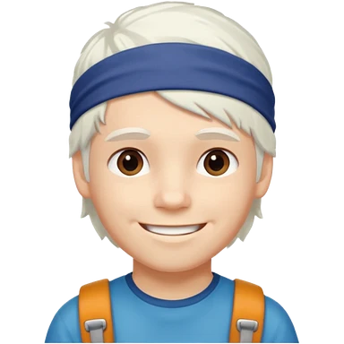 young climber boy with white hair and headband emoji