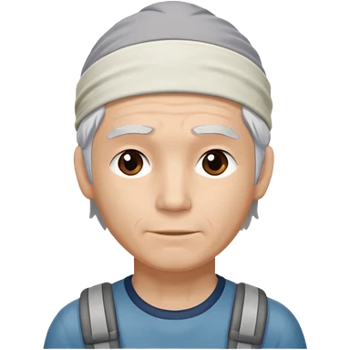 young climber man with white/grey hair and headband emoji