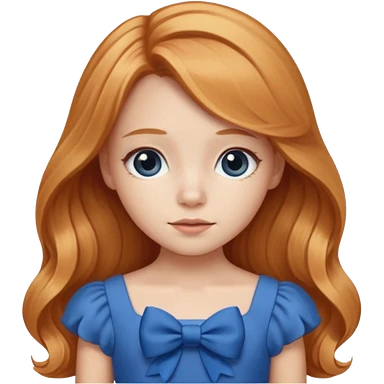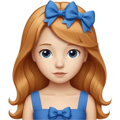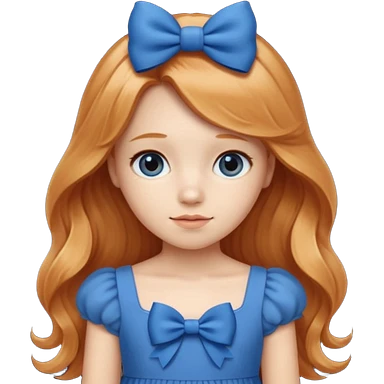 young girl with blue dress, cute blue bow and long strawberry blonde hair emoji